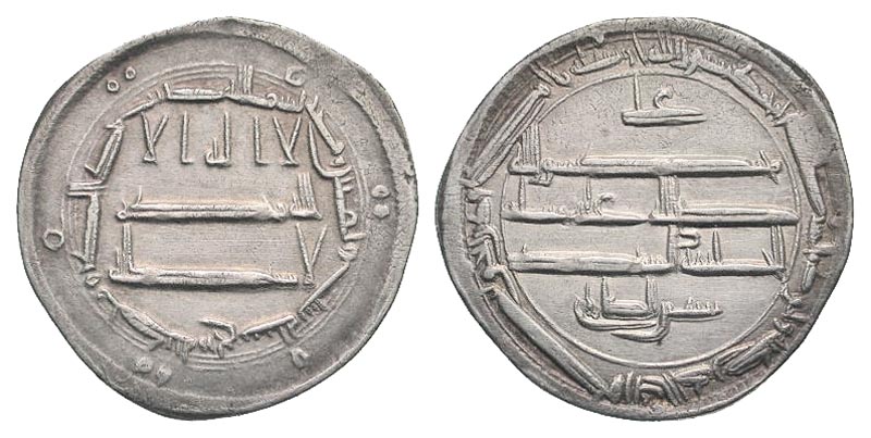 Lot 54-225. Abbasid Caliphate. al-Rashid. 170-193/786-809. AR dirhem. Madinat Zaranj mint, dated A.H. 186. Rare.