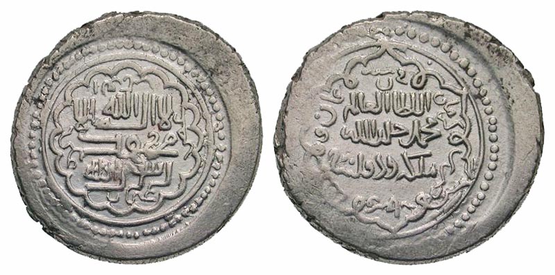 Lot 54-250. Ilkhans (Mongols of Persia), 3rd Period: Rival Khans. Muhammad Khan. 736-738/1336-1338. AR 6 dirhams. Kirman mint, dated A.H. 738.