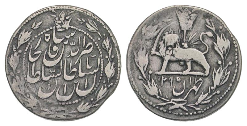 Lot 54-253. Qajars. Nasir al-Din Shah. 1264-1313/1848-1896. AR qiran. Tehran mint, dated A.H. 1295.