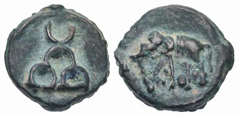 Lot 54-256. Mauryan Empire, Sunga. ca. 150 B.C.-A.D. 100 AE half karshapana.