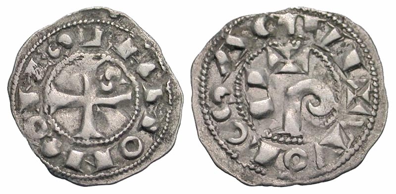 Lot 54-260. France, Provincial. Toulouse. Raymond V-VI. 1148-1249. AR obol.