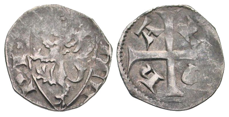 Lot 54-263. Low Countries, Herstal. Henri de Louvain. A.D. 1254-1285. AR denier. Struck ca. 1282. Rare.