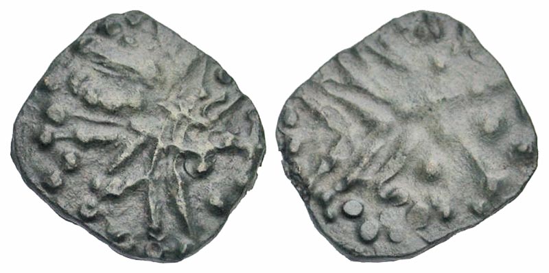 Anglo-Saxon, Kings of Northumbria. Irregular Issues. ca. 843/4-855. AE styca (13.6 mm, 1.00 g). York mint. Nonsensical legend, cross with pellet in each angle / Nonsensical legend, cross. SCBC 872; North p. 72 note; Pirie -; Abramson -/-. VF, crude.