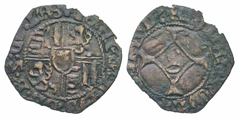 Lot 54-275. Spanish Netherlands, Liege. Jean de Heinsberg. 1419-1455. AE brule.
