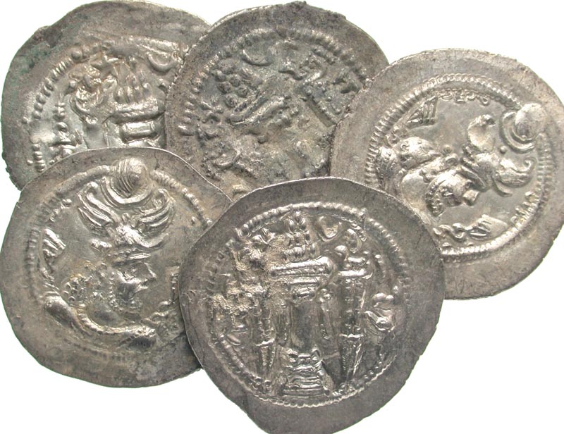 Lot 54-281. [Eastern Cultures]. Lot of 5 Sasanian Drachms, Peroz I.