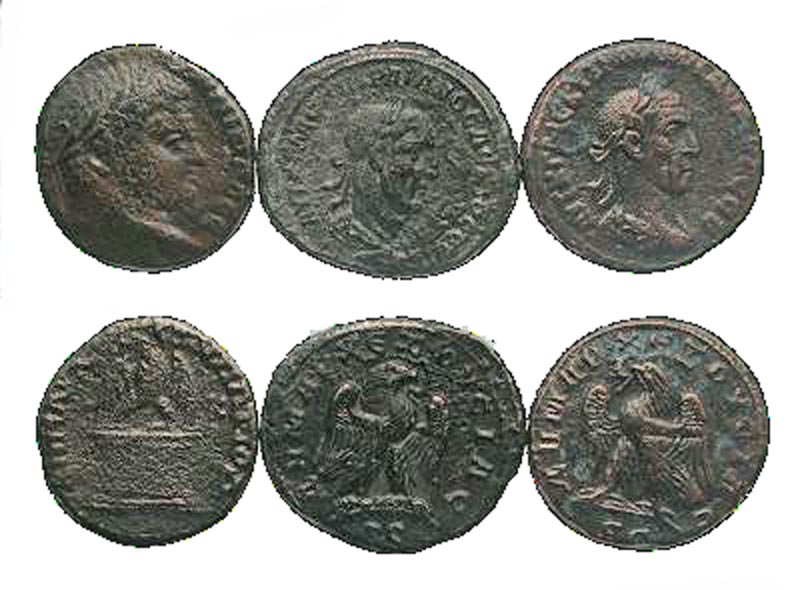 [Roman Provincial]. Lot of 3 Syrian Tetradrachms. Byblos, Caracalla / (2) Antioch, Trajan Decius. Cleaned, Fine. The Byblos is scarce.
