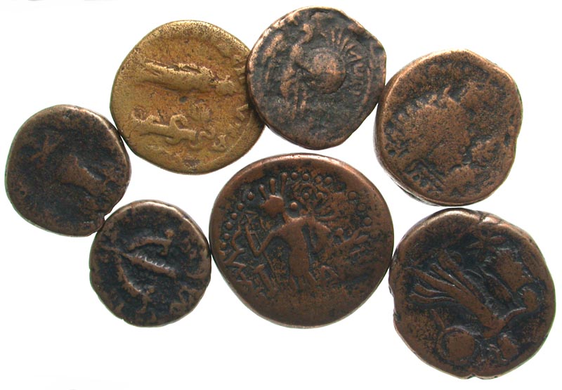 [Roman Provincial]. Lot of 7 Biblical City Coins. Unidentified, all different. A nice variety but lower grade. All group lots are sold as-is, returns not accepted. The coins shown are the exact coins you will receive.