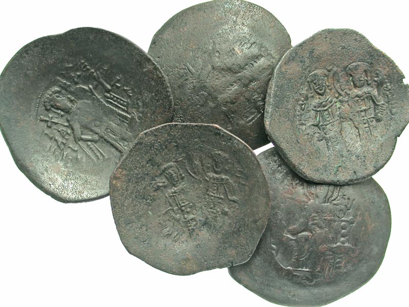 [Medieval]. Lot of 5 Bulgarian Imitations. Imitiating Manuel I, Isaac II, or Alexius III. Fine. All group lots are sold as-is, returns not accepted. The coins shown are the exact coins you will receive.