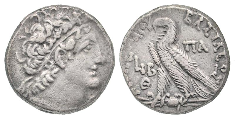 Lot 55-064. Ptolemaic Kingdom. Cleopatra III and Ptolemy X Alexander I. 107-101 B.C. AR tetradrachm. Alexandria mint, dated RY 12 of Cleopatra; RY 9 of Ptolemy (106/5 BC).