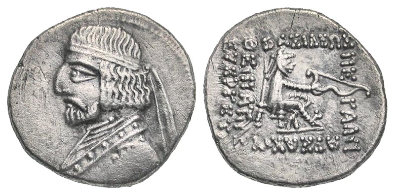 Lot 55-081. Parthian Kingdom. Orodes I. 80-75 B.C. AR drachm. Rhagae mint. Ex Wilkes & Curtis Auction 4, lot 379.