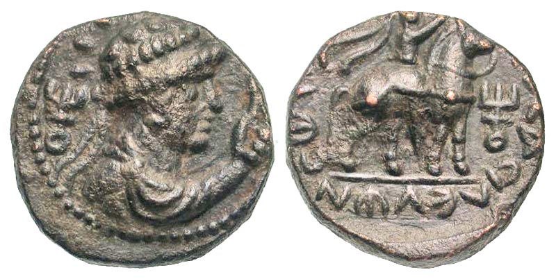 Lot 55-096. Kushan Empire. Vima Takto (Soter Megas). Ca. A.D. 80-100/5. AE tetradrachm.