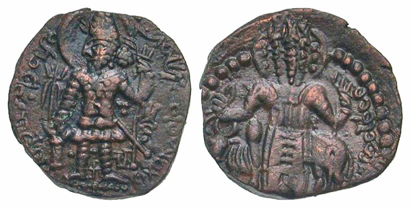 Lot 55-097. Kushan Empire. Vasudeva I. Ca. A.D. 191-230. AE drachm. Very Rare.
