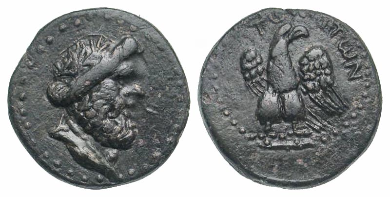 Moesia Inferior, Tomis. Civic Issue. 2nd century A.D. AE 20 (19.9 mm, 4.64 g, 2 h). Laureate head of Zeus right / TOMITΩN, eagle standing left, head right, with open wings. AMNG 2508; SNG Stancomb 884 var; SNG BM Black Sea -. aVF. Scarce.