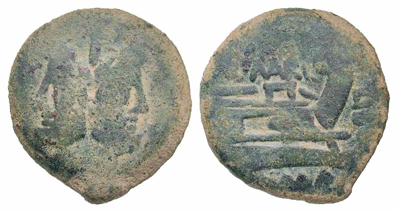 Lot 55-143. Q. Marius Libo. 148 BC. AE as. Rome mint. Scarce. Ex RBW Collection (not in previous sales); purchased privately from Tom Cederland (August, 1995).