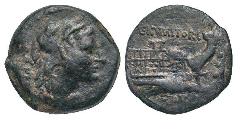 C. Numitorius C.f. Lem. 133 B.C. AE quadrans (20.3 mm, 4.05 g, 1 h). Rome mint. Head of young Hercules right, wearing lion's skin headdress, three pellets behind / C NVMITORI / ROMA, prow of galley right, three pellets to right. Crawford 246/4a; Sydenham 467b. VF, black patina with orange highlights. Rare.