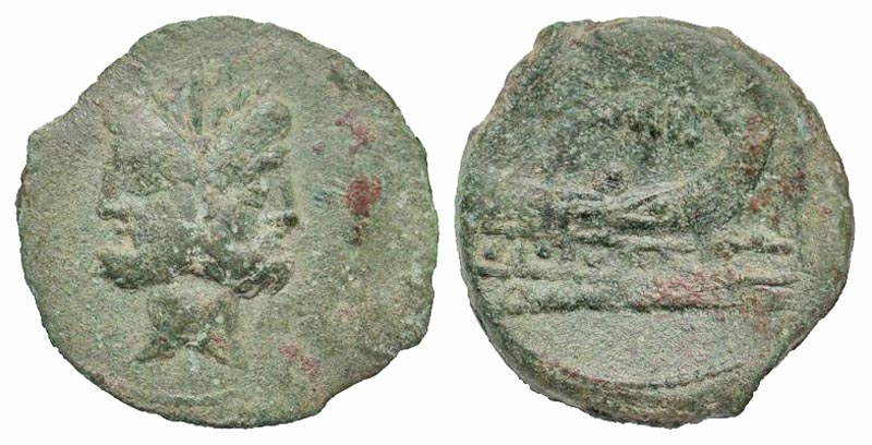 Lot 55-150. D. Junius L.f. Silanus. 91 B.C. AE as. Semuncial standard. Rome mint. Scarce. Ex RBW collection (not in previous sales).