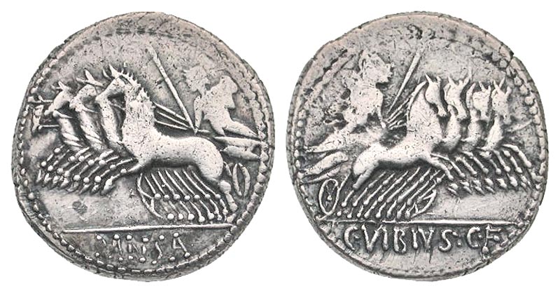 Lot 55-151. C. Vibius C.f. Pansa. 90 B.C. AR denarius. Rome mint. Ex RBW collection (not in previous sales).