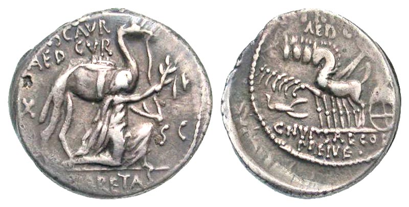 Lot 55-155. M. Aemilius Scaurus & Pub. Plautius Hypsaeus. 58 B.C. AR denarius. Rome mint.