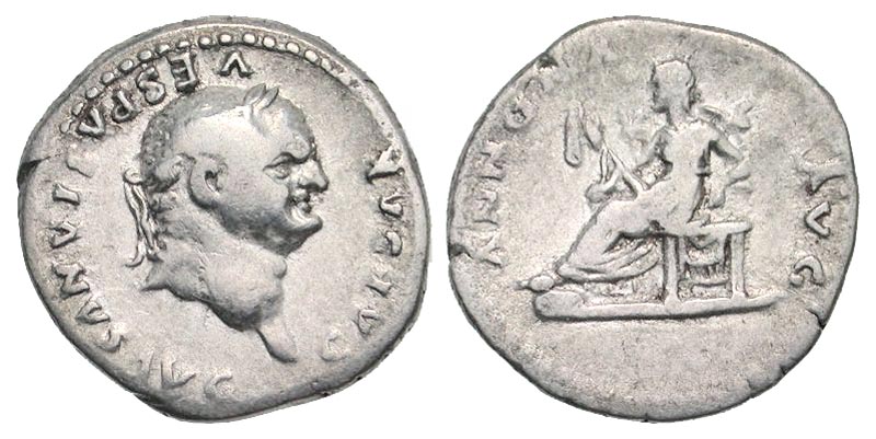 Lot 55-162. Vespasian. A.D. 69-79. AR denarius. Rome mint, struck A.D. 77-78.