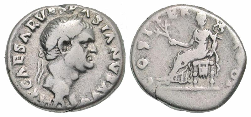 Lot 55-163. Vespasian. A.D. 69-79. AR denarius. Rome mint, struck A.D. 70.