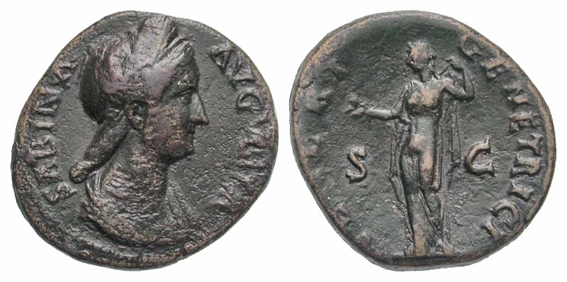 Lot 55-169. Sabina. Augusta, A.D. 128-136/7. AE as. Rome mint, struck 136 A.D.. Rare.