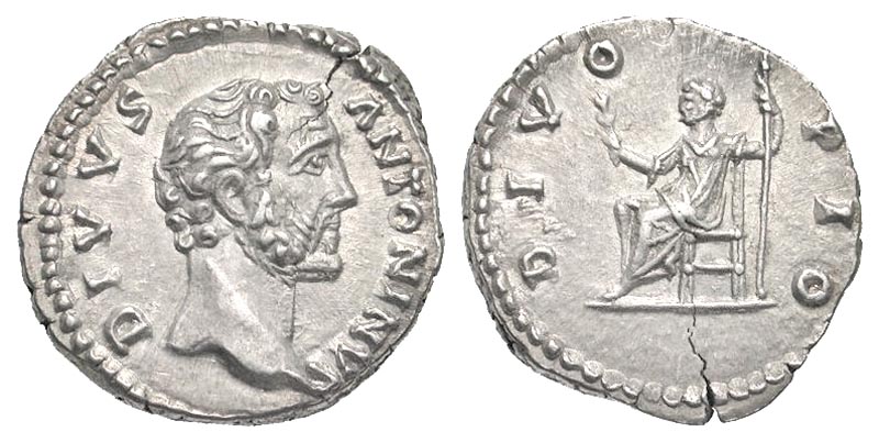 Lot 55-173. Divus Antoninus Pius. Died A.D. 161. AR denarius. Rome mint, under Marcus Aurelius and Lucius Verus, A.D. 162.
