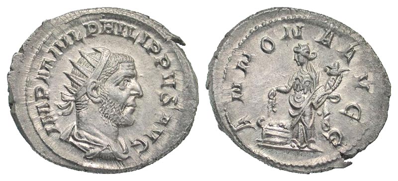 Lot 55-185. Philip I. A.D. 244-249. AR antoninianus. Rome mint, struck A.D. 247.
