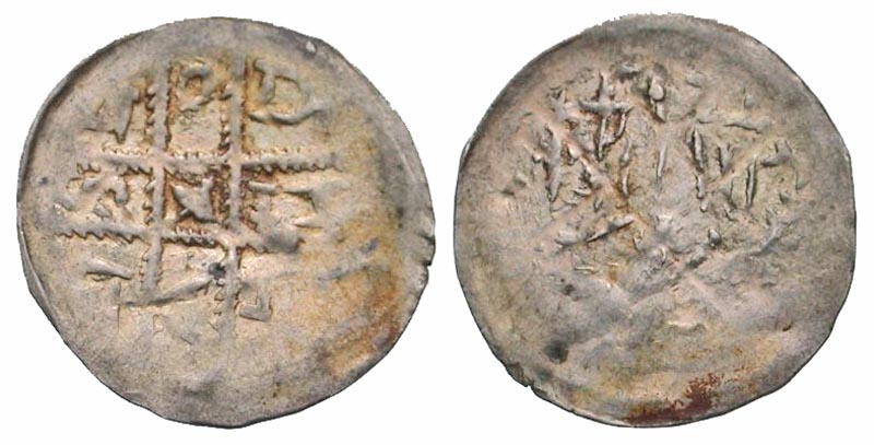 Poland. Wladislaw II. 1163-1177. AR denar (16.1 mm, 0.29 g). LODI, legend around cross / Wladislaw's two sons standing. Kopicki 6426; Gumowski 167. Fine. Rare.