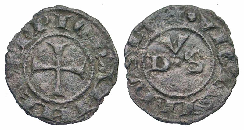 Italy, Papal States. John XXII. 1316-1334. BI picciolo (15.4 mm, 0.47 g, 8 h). Macerata mint. + P P IOhAИИES, cross pattée / + VICESIMV SEC, V / D · S, legend in two lines. Berman 172; CNI XV 3; Muntoni 3. aVF. Scarce.