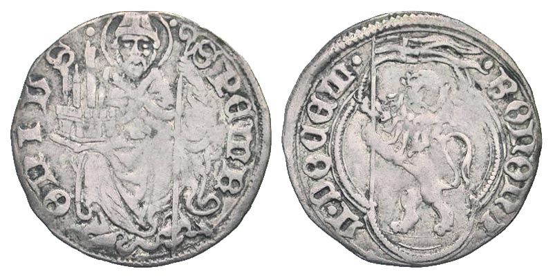Italy, Papal States. Anonymous. Early 16th century AR carlino (21.1 mm, 1.56 g, 7 h). Bologna mint. ·BONONIA·DOCET·, lion advancing left holding banner / SPETRONIVS, St. Petronius entroned facing, holding crozier in right hand, city in left. Berman 763; CNI 33; Muntoni 32-33. Toned aVF.