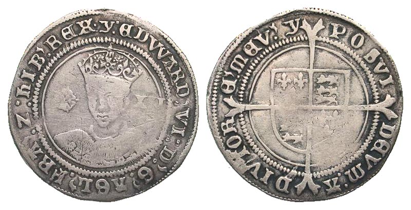 Lot 56-255. England, House of Tudor. Edward VI. 1547-1553. AR shilling. London mint, Third period; im: Y. Struck 1551.
