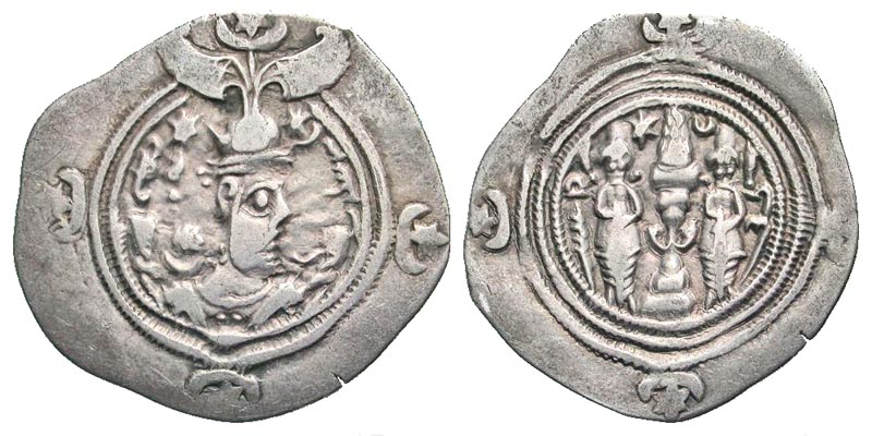 Lot 57-071. Sasanian Kingdom. Khusru II. A.D. 591-628. AR drachm. RD (Rayy) mint, dated RY 9.