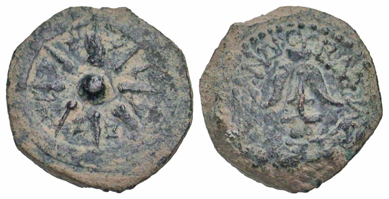 Lot 57-077. Judaea, Hasmonean Kingdom. Alexander Jannaeus. 103-76 B.C.E. AE prutah. Jerusalem mint.