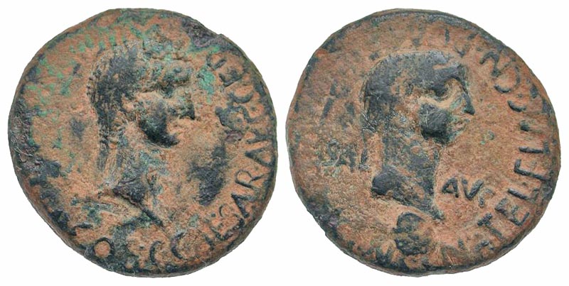 Lot 57-083. Hispania, Carthago Nova. Gaius (Caligula). A.D. 37-41. AE as. Cn. Atellius Flaccus and Cn. Pompeius Flaccus, duoviri. Scarce.