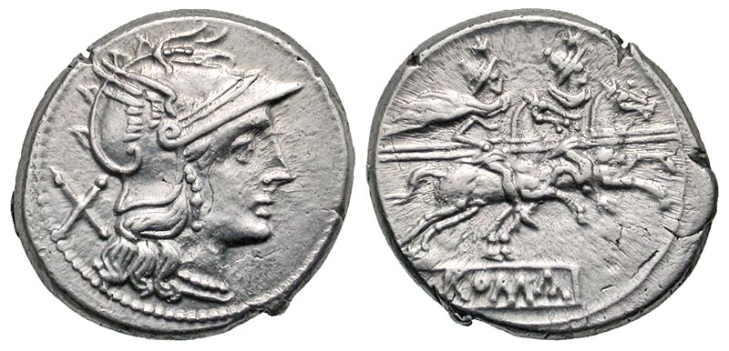 Lot 57-126. Anonymous. 189-180 BC. AR denarius. Rome mint. Ex RBW collection (not in previous sales); Ex Goodman collection.