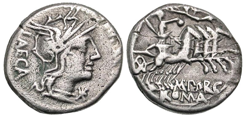 Lot 57-138. M. Porcius Laeca. 125 B.C. AR denarius. Ex D. Thomas collection.