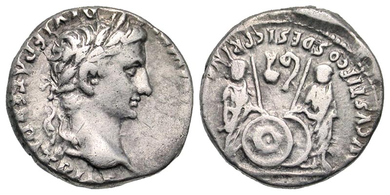 Lot 57-157. Augustus. 27 B.C.-A.D. 14 AR denarius. Lugdunum mint, struck 2 B.C. - A.D. 4