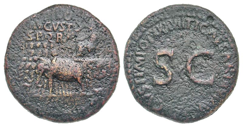 Lot 57-159. Divus Augustus. Died A.D. 14. AE sestertius. Rome mint, struck A.D. 35-36.