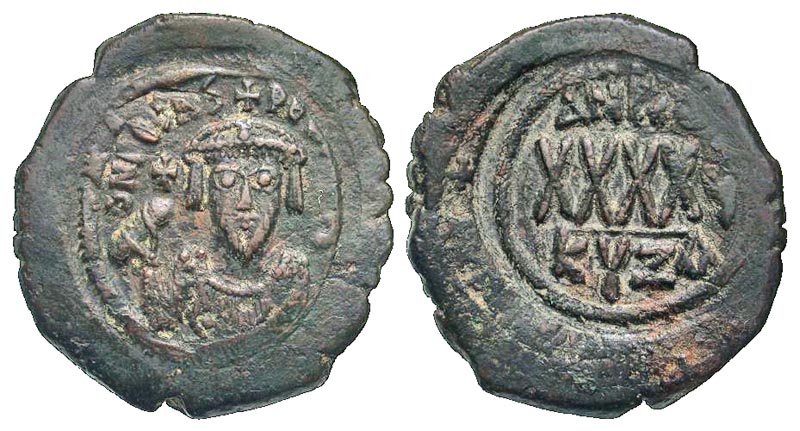 Lot 57-205. Phocas. 602-610. AE follis. Cyzicus mint, Dated RY 3 (AD 604/5).