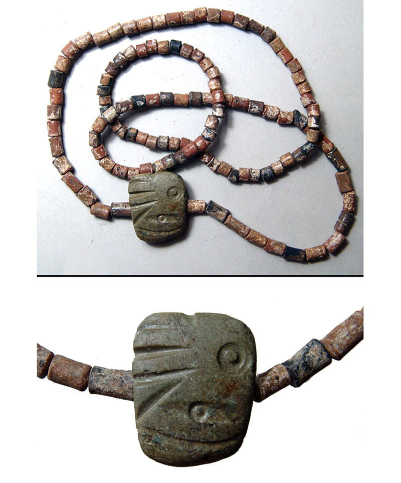 Lot 1-309. A Mixtec Greenstone Pendant on Necklace with Ancient Stone Beads.
