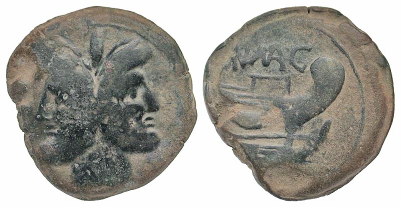 Cnaeus Pompey Jr. 46-45 B.C. AE as (32.1 mm, 21.40 g, 8 h). Uncial standard. Corduba mint. Laureate head of Janus; I above / CN·MAG / IMP, prow of galley right; I to right. Crawford 471/1; Sydenham 1040; RPC 486; CRI 53. aVF, sandy patina, flan chip. Very Rare. Ex D. Thomas collection.