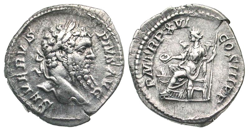 Lot 58-163. Septimius Severus. A.D. 193-211. AR denarius. Rome mint, struck A.D. 208.