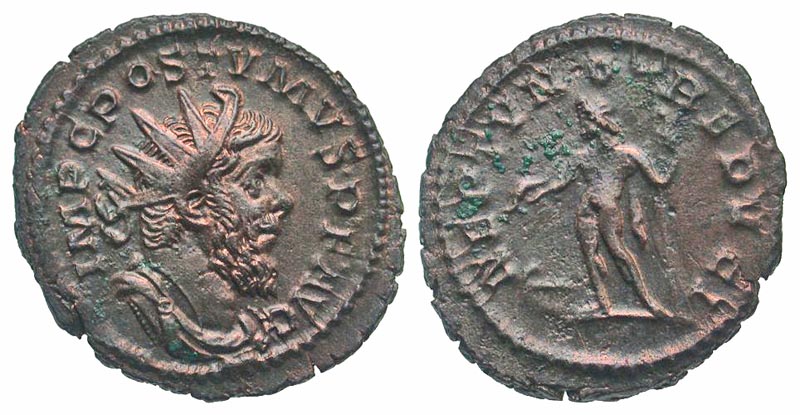 Lot 58-174. Postumus. Romano-Gallic Emperor, A.D. 260-269. AE antoninianus. Treveri mint, struck A.D. 262.