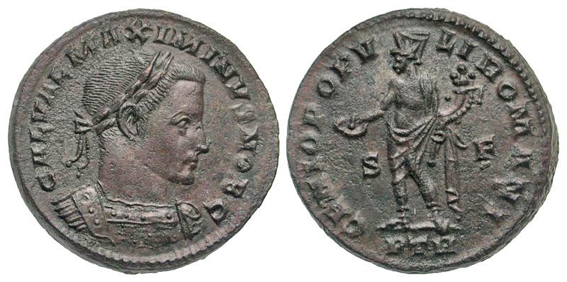 Lot 58-187. Maximinus II Daza. A.D. 309-313. AE follis. Trier mint, struck A.D. 305-307.