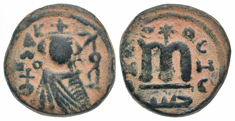 Lot 58-243. Arab-Byzantine, Umayyad Caliphate. Imperial bust type. 680s-ca. 693. AE Fals. Hims (Emesa) mint.