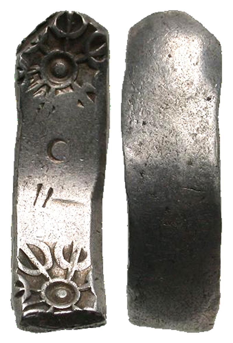 Lot 58-244. Gandhara. Maha Janapada. 500-300 B.C. AR "Bent Bar' satamana. Taxila mint.
