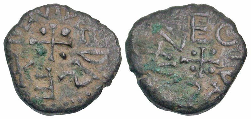 Anglo-Saxon, Kings of Northumbria. Aethelred II. First reign, 841-843/4. AE styca (12.1 mm, 0.75 g, 6 h). York mint. Leofdegn, moneyer. +EDELRED RE, cross pattée with pellets in quarters / +LEOFDEGN, cross pattée with pellets in quarters. SCBC 866; North 188; Pirie ; Abramson 130/25. VF.