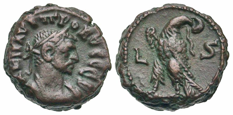 Egypt, Alexandria. Probus. A.D. 276-282. BI tetradrachm (18.4 mm, 8.62 g, 11 h). Dated RY 4 = A.D. 278/9. A K M AVP ΠPOBOC CEB, laureate,draped, and cuirassed bust right / L-S, eagle standing facing, head right, with wreath in its beak. Dattari 5554; Milne 4629; Emmett 3984. VF.