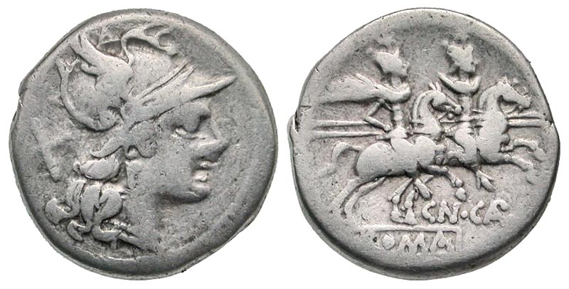 Lot 59-147. Cn. Calpurnius Piso. Ca. 189-180 B.C. AR denarius. Rome mint. Ex D. Thomas collection.