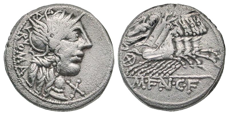 Lot 59-156. M. Fannius C.f.. 123 B.C. AR denarius. Rome mint. Ex D. Thomas collection.